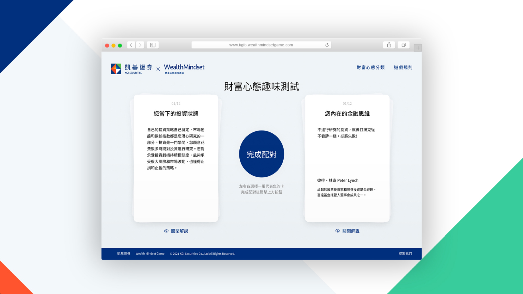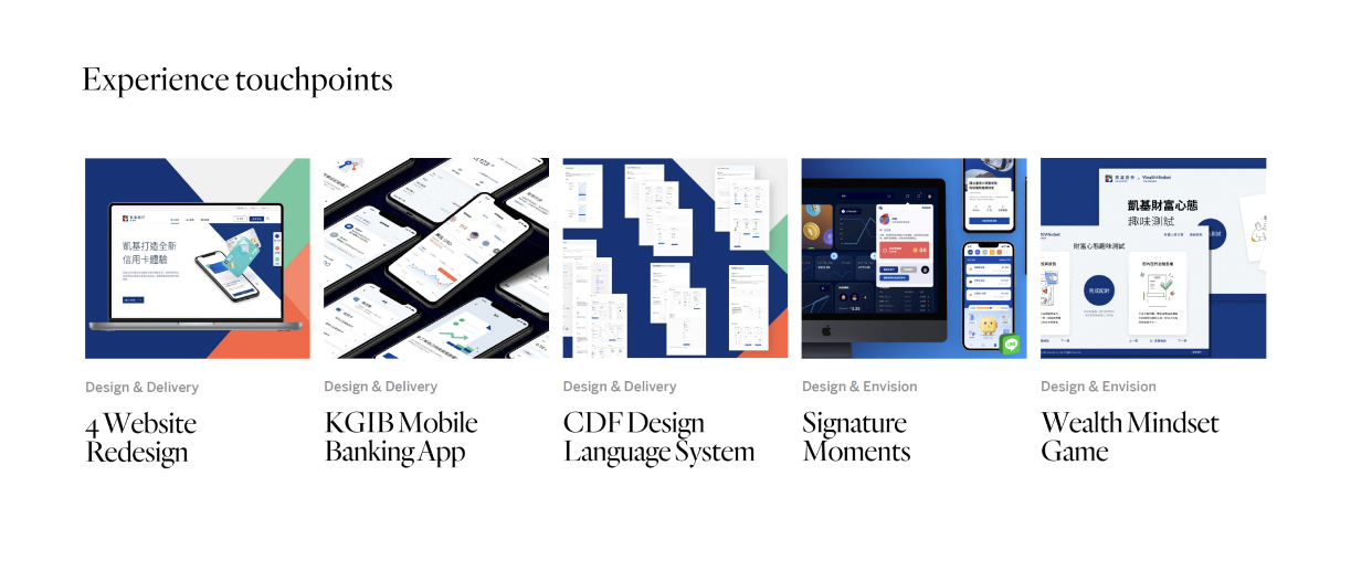 In collaboration with frog Shanghai & frog Asia, China Development Financial underwent a digital refresh of the Group’s key touch points to elevate the customer experience with CDF. This entailed the launch of a new KGI Bank app and a redesign of 4 corporate websites each supported by a Design Language System(DLS) built to scale a consistent digital brand identity across customer touch points, the launch of two separate initiatives, the Wealth Mindset Game targeted towards consumer financial education and signature moments designed to differentiate CDF customer experience.