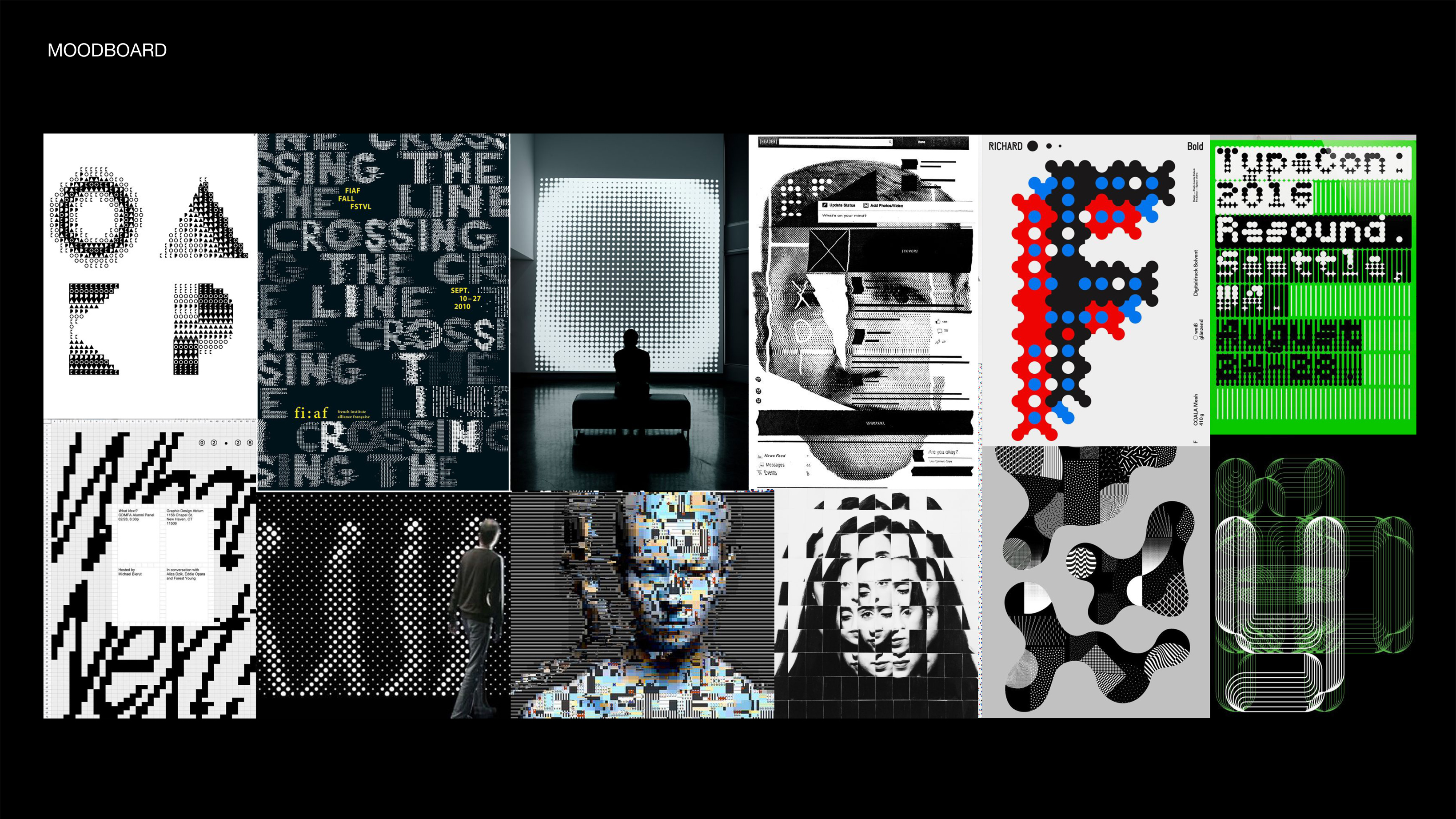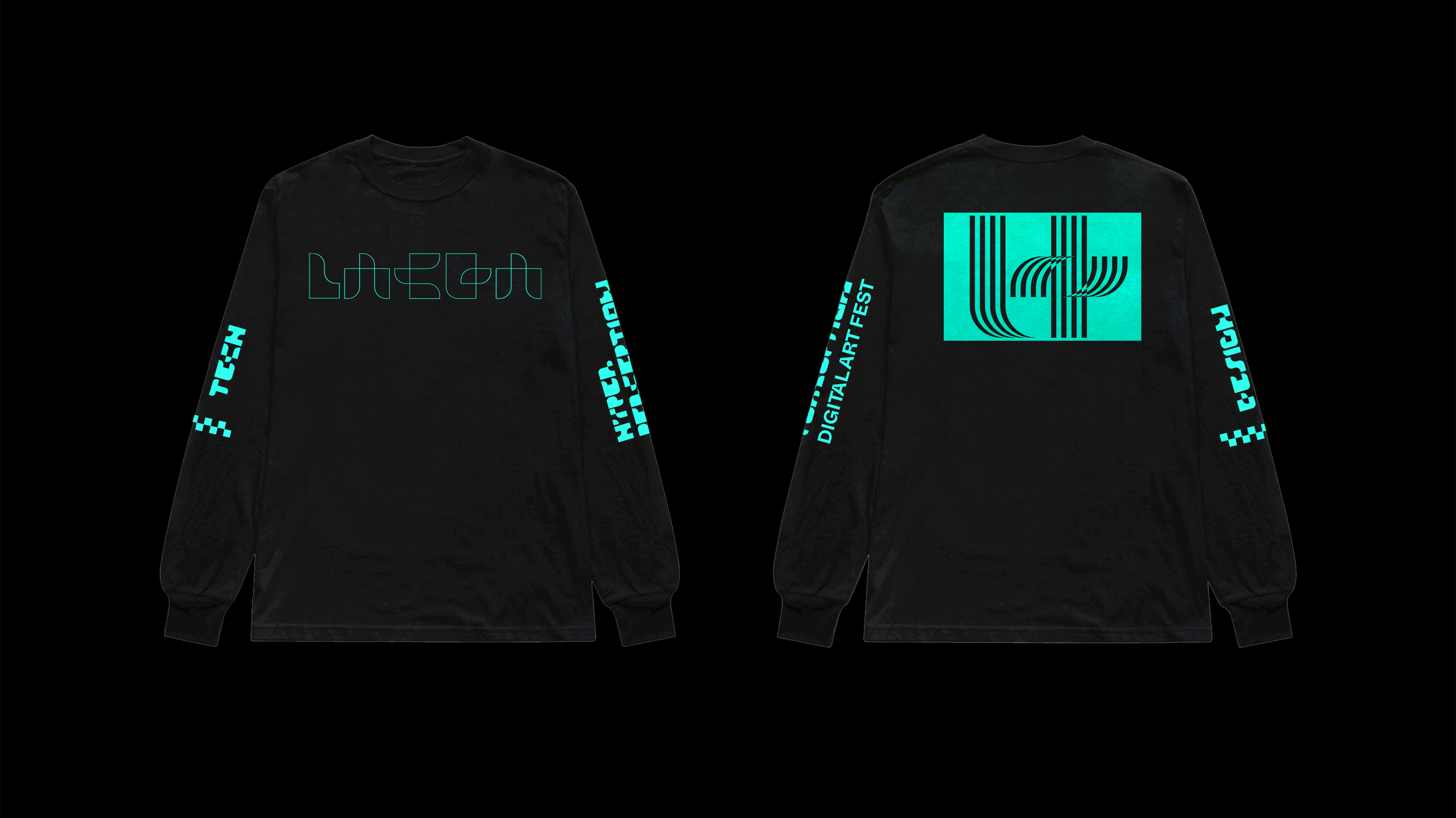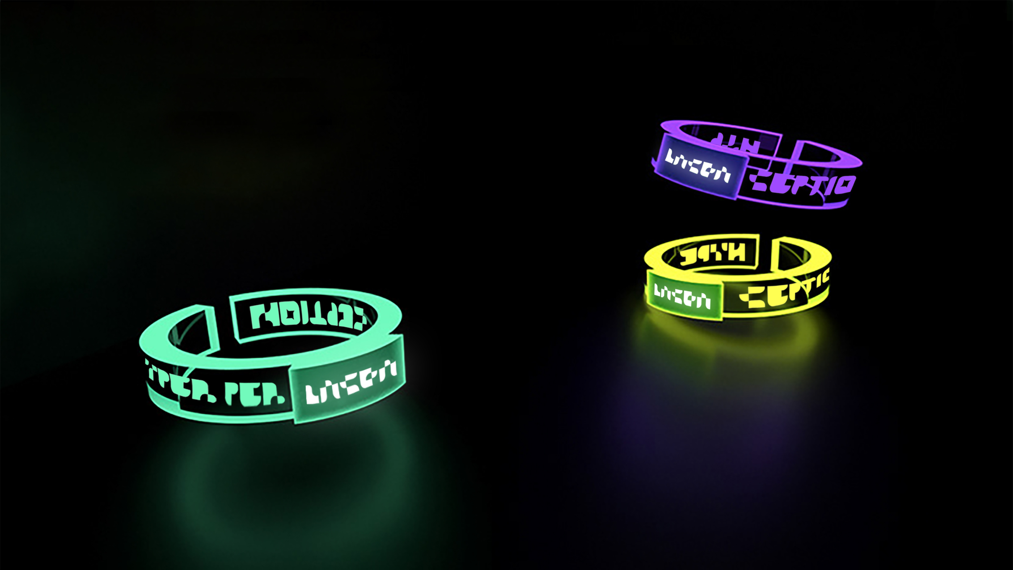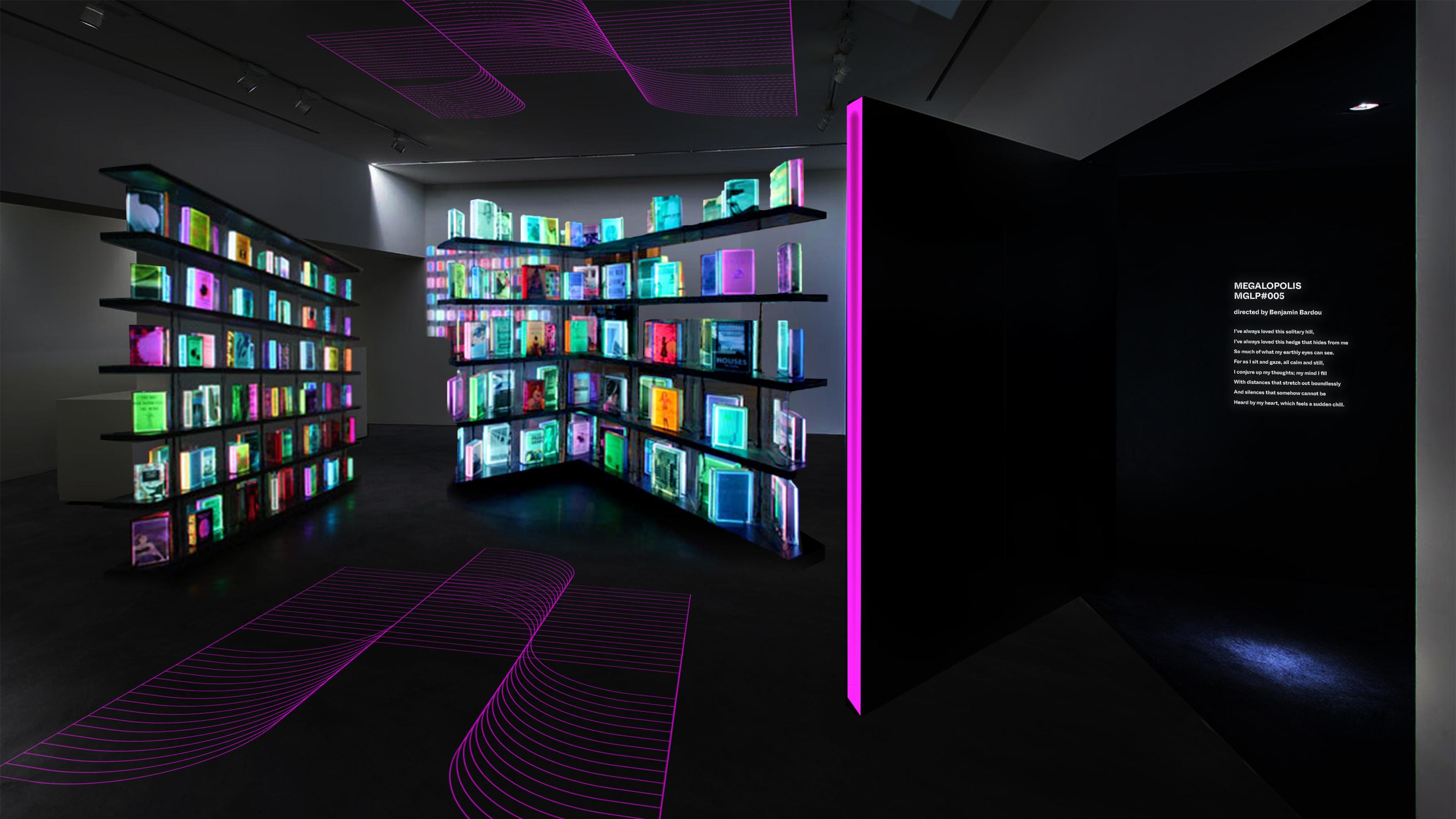 RGB screen values represent digital works and the colors really stand out in the dark.