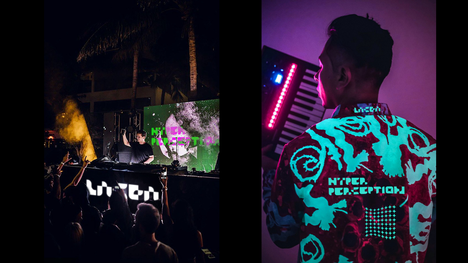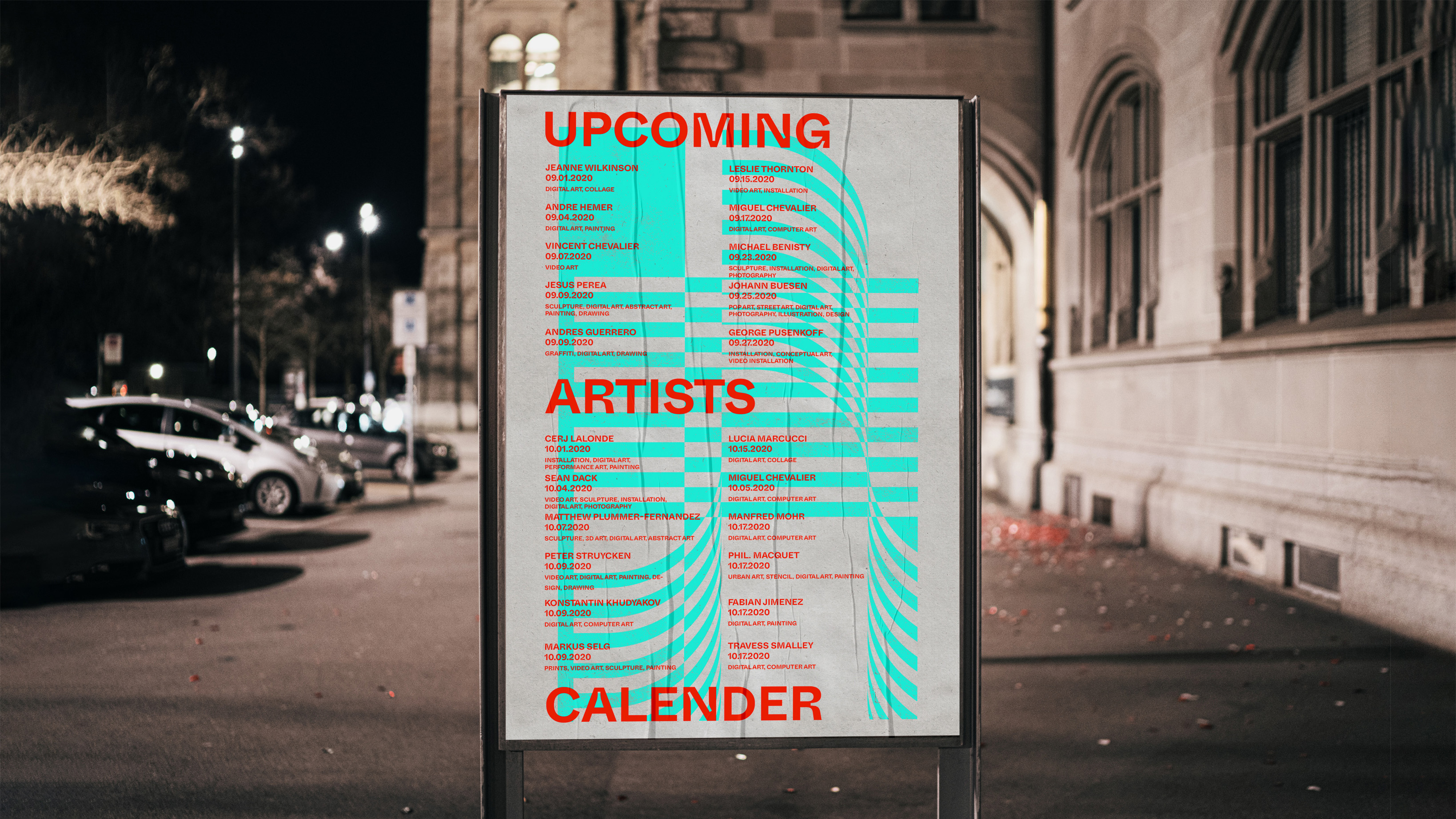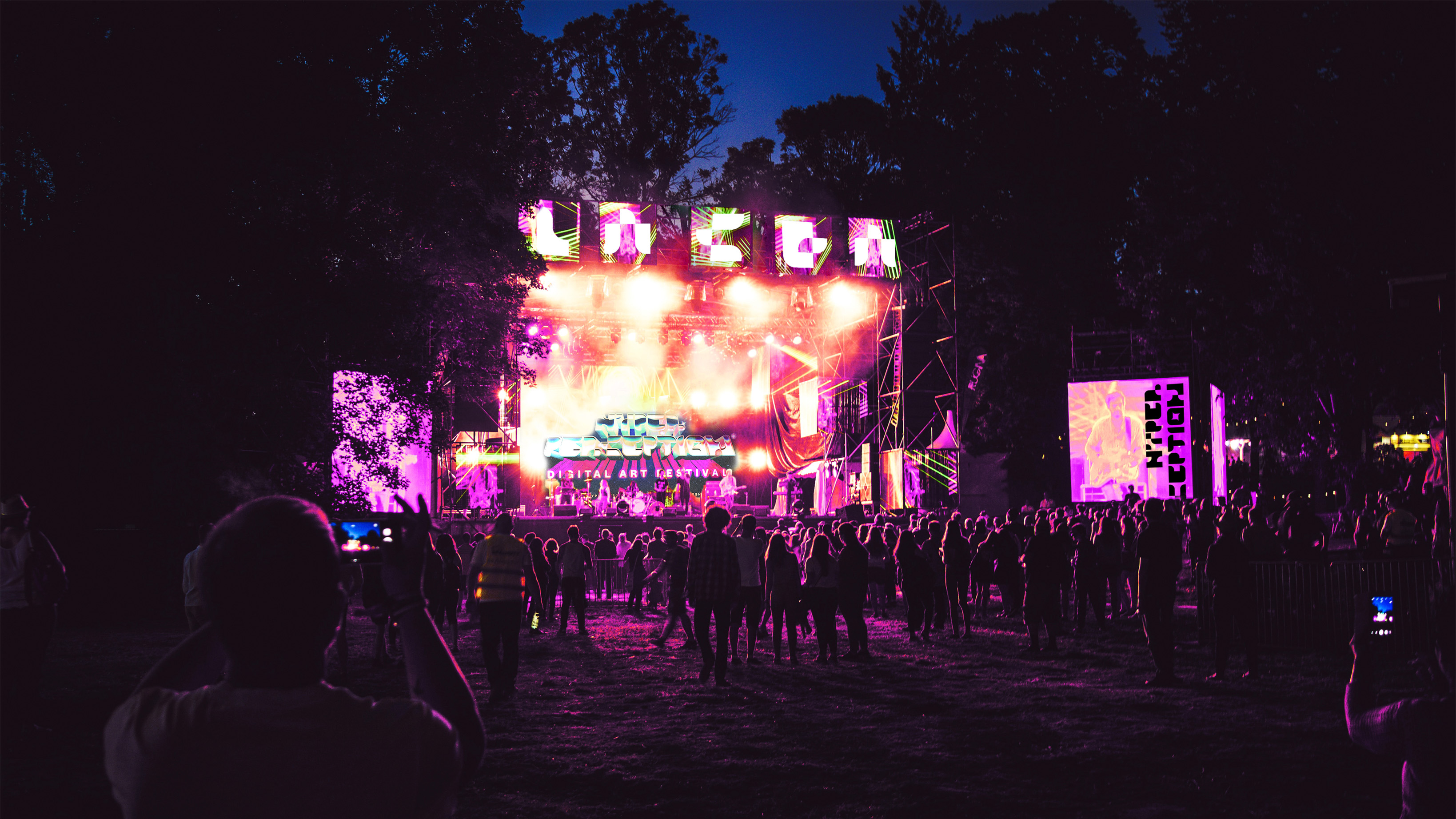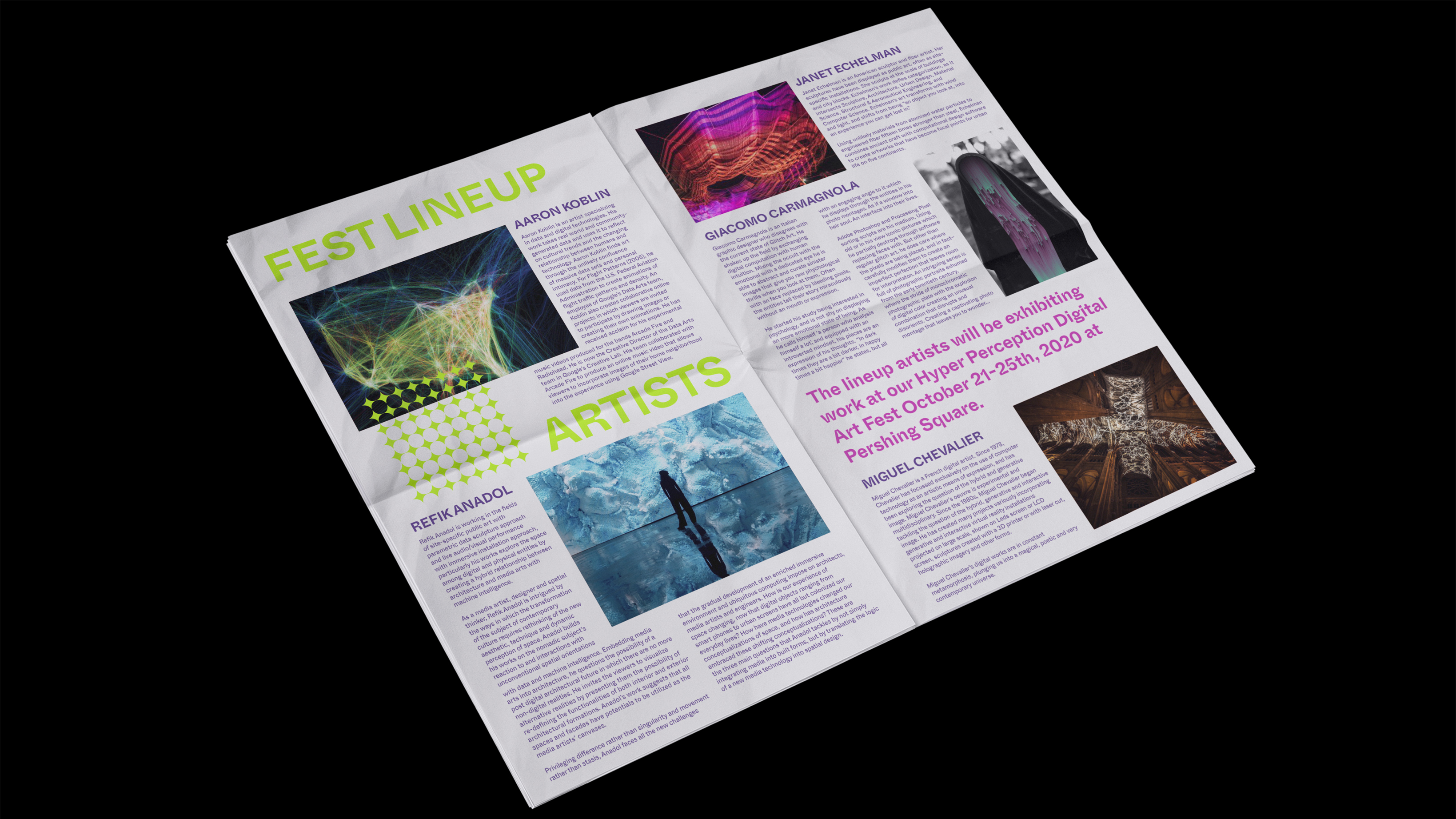 RGB screen values represent digital works and the colors really stand out in the dark.