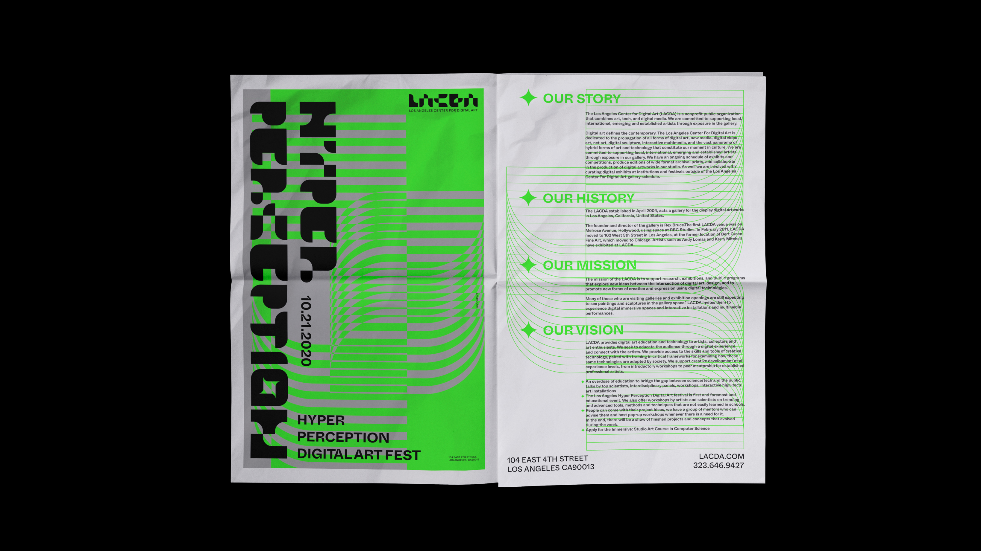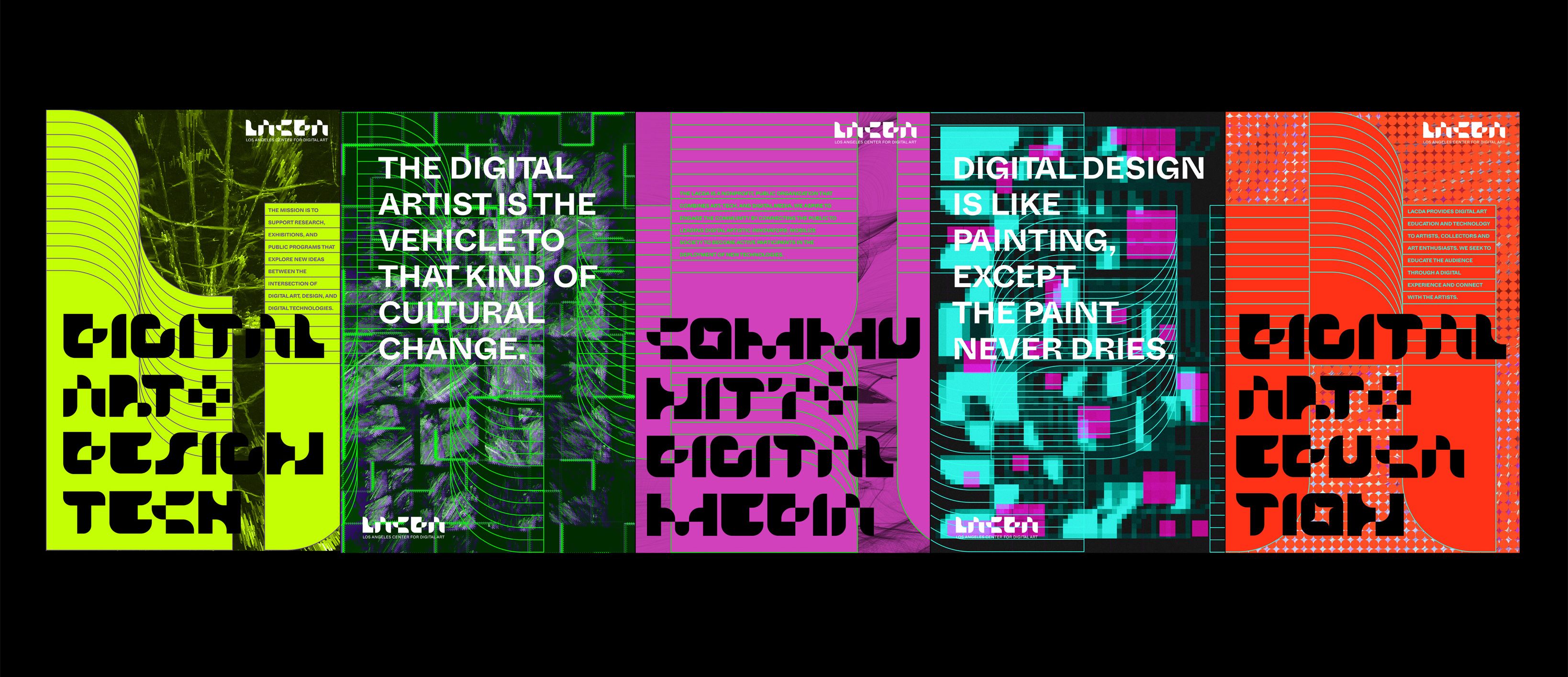 The mission of the LACDA is to support artists, exhibitions, research, public programs that explore new ideas between the intersection of digital art, design, and to promote new forms of creation and expression using digital technologies.