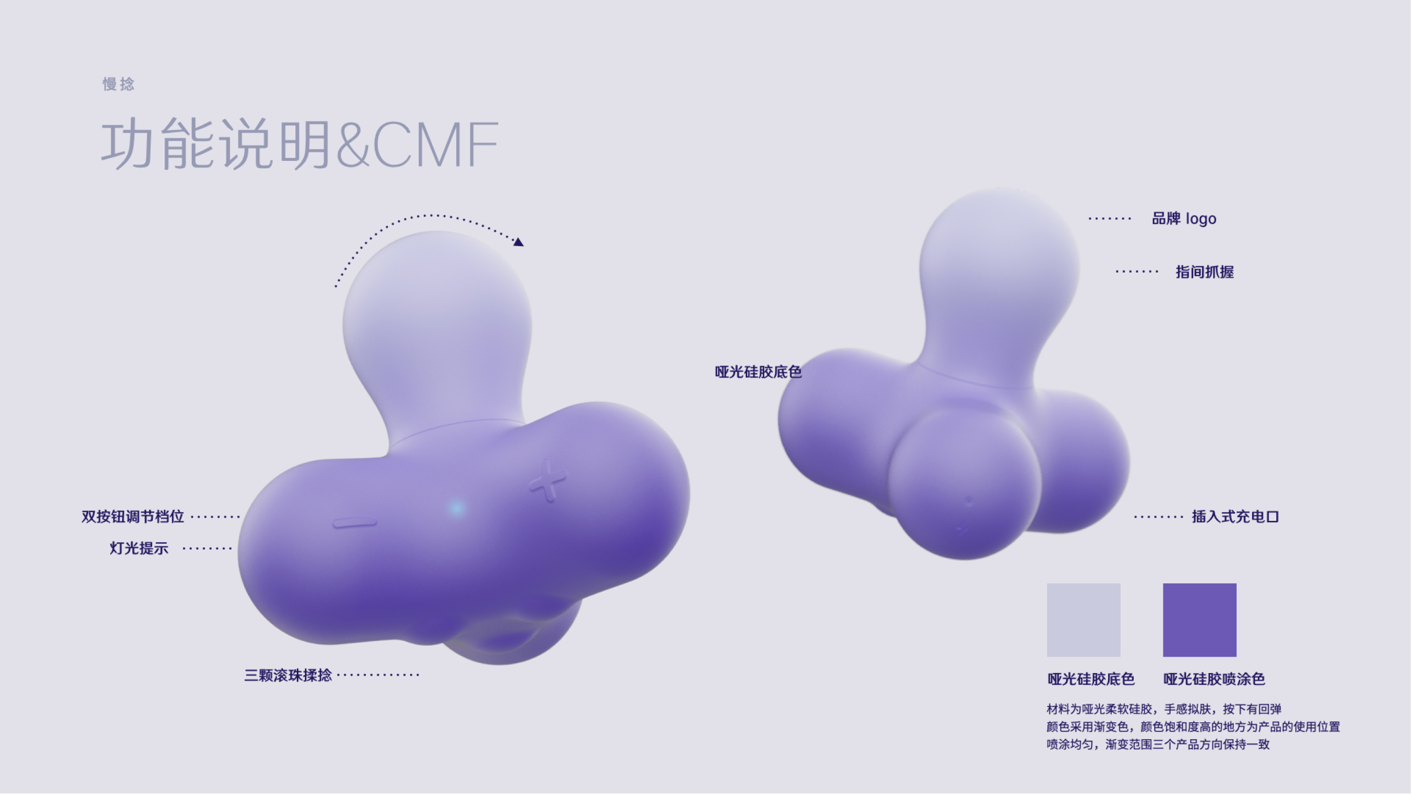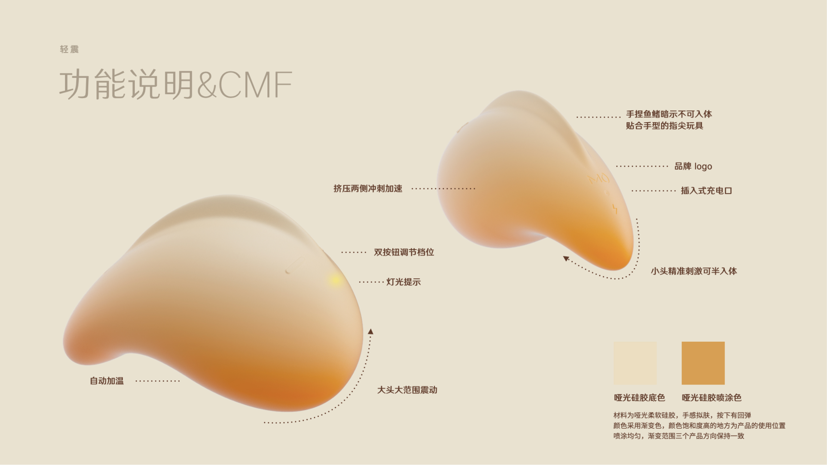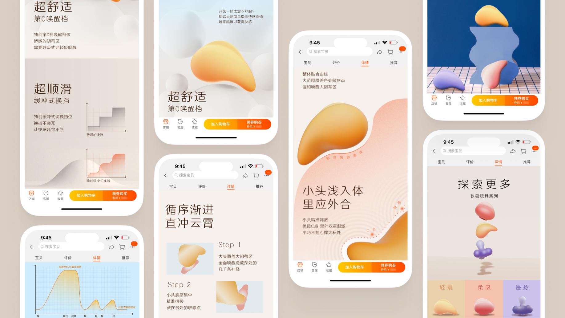 For women with different sexual experience, we respectively provide the overall product experience design with a set of 3 ’finger’ egg vibrators for entry level user and a ’slow sex’ vibrator for experienced user, so as to eliminate the psychological barriers of different consumers.