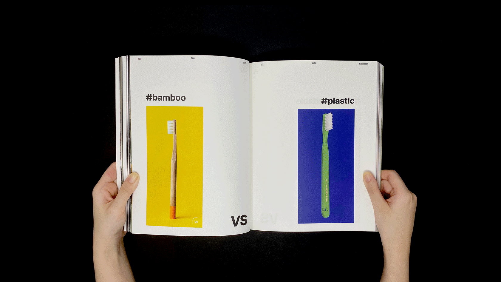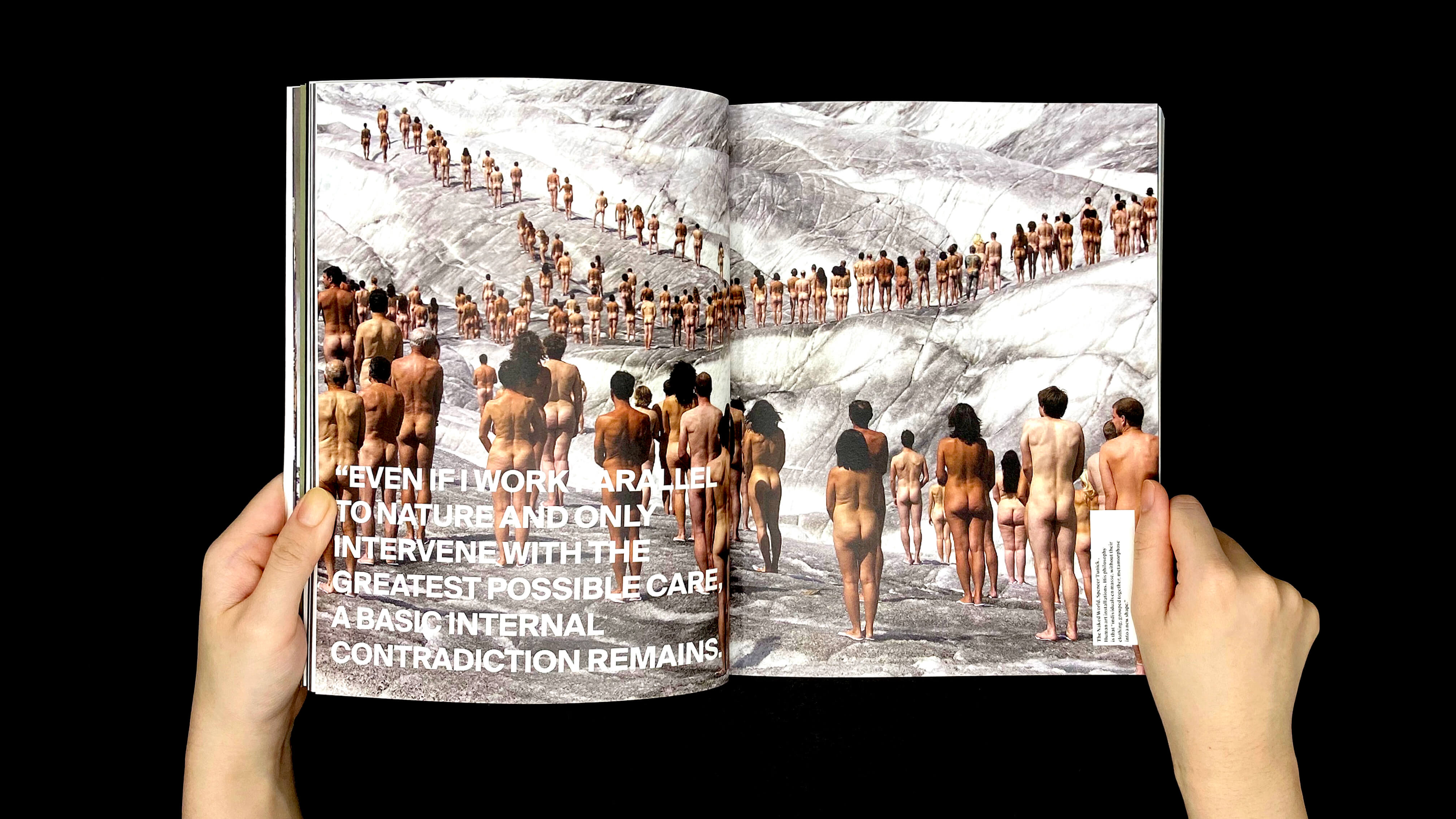 The publication’s cover is an image featuring restrained hands behind plastic bubble wrap, which breaks down the stereotype of the image about protecting the environment. The idea came from how art is integrated with nature, even when nature is heavily polluted. On the other hand, the truth of land art is that it contradicts itself. It harms what it touches: the virginity of nature.
